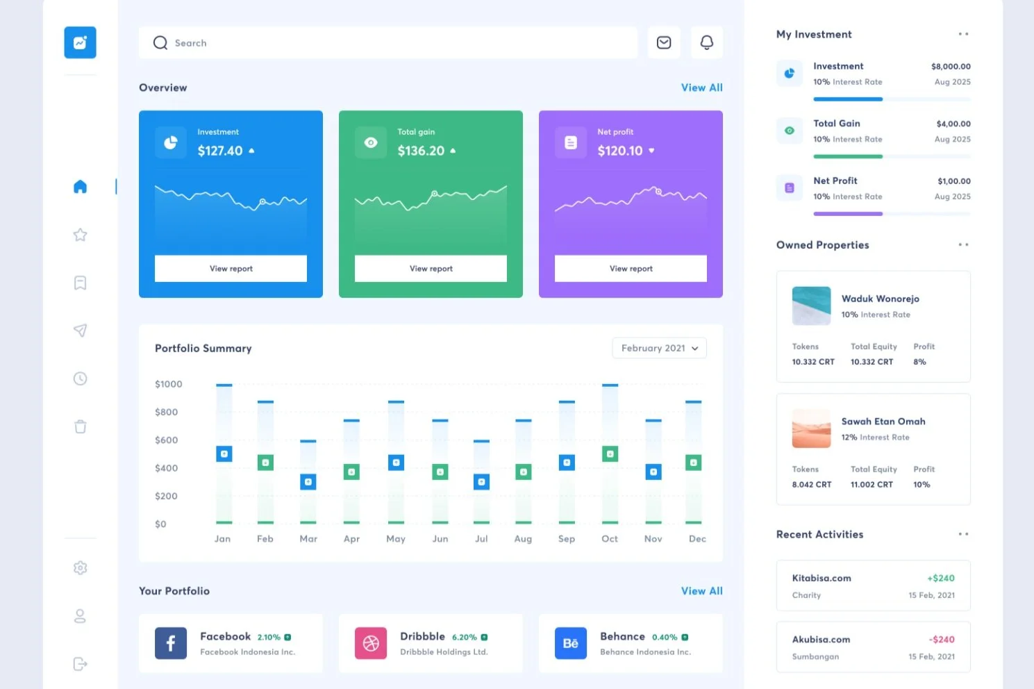 Design a white label investment dashboard focusing on modern design and accessibility, client brand support, and efficiency via a product-wide design system.