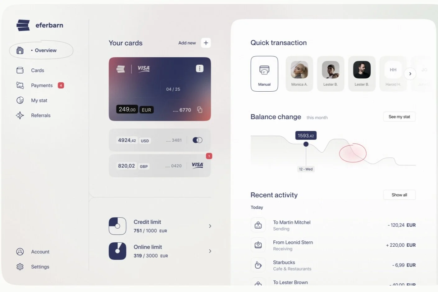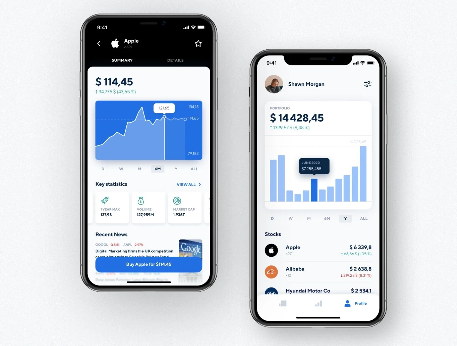 Whether on desktop or mobile, the apps we referenced made use of cards and columns to break up information into bite-sized chunks, create hierarchy and relationships and help emphasize what is actionable and what is informational. Since we had lots of accounts, transactions, and performance metrics to track, cards made sense to help break things out and create an easy to follow information architecture.