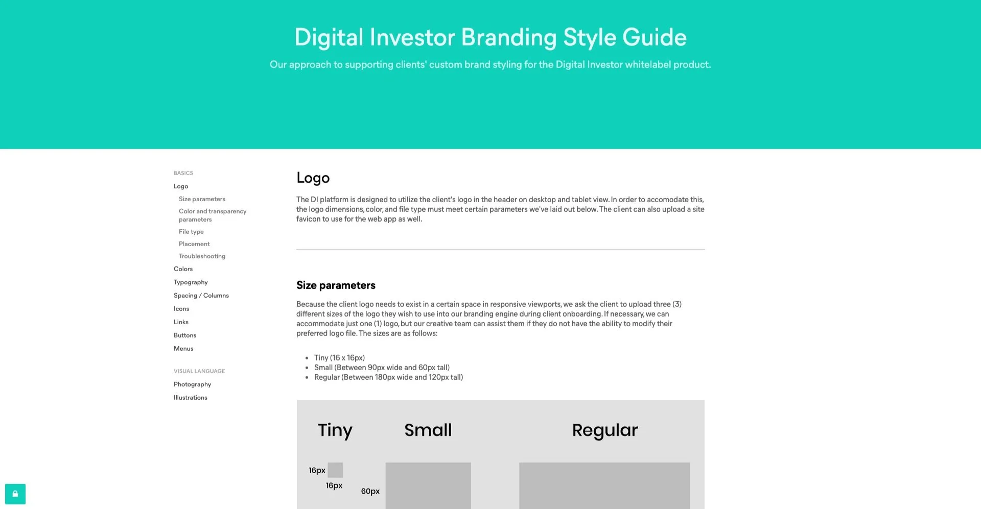 I created a style guide using Frontify to showcase how we would handle brand customization and styling for clients, including logos, color, typography, and more.